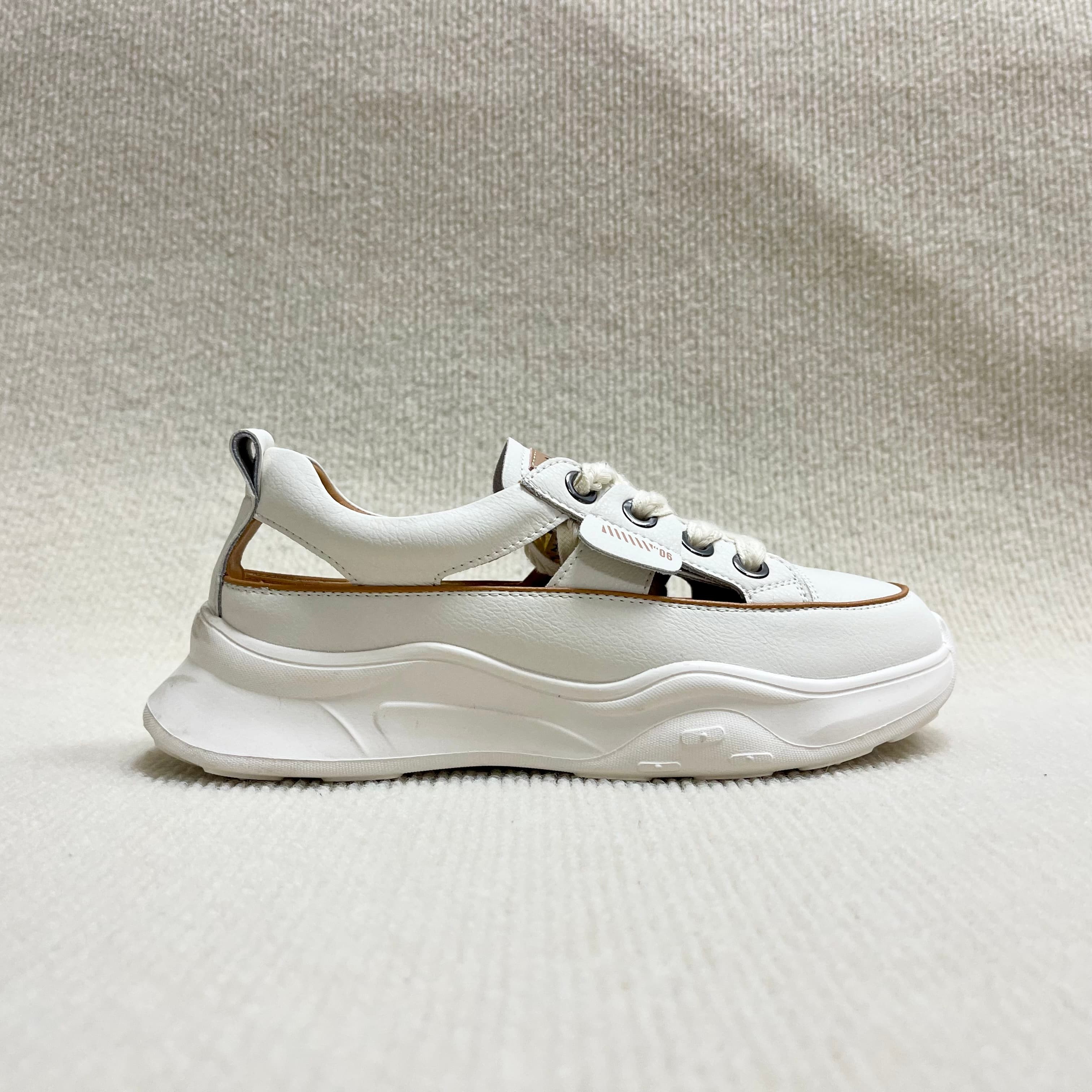 Giày dép bằng da phụ nữ với giày chân không bằng phẳng và rỗng và dây đeo![]()